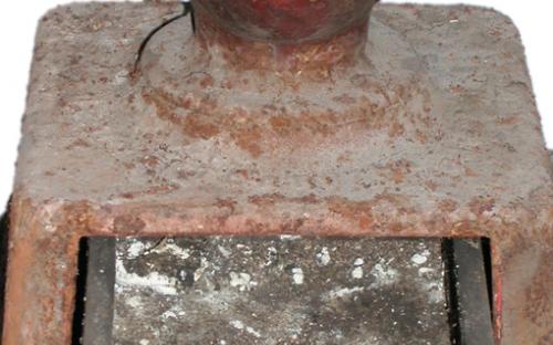 S’ha començat la intervenció eliminant la pols i l’òxid més superficial. S’ha fixat la pintura que estava a punt de desprendre’s i posteriorment s’ha tractat la corrosió del ferro, eliminant les concrecions i inhibint el procés corrosiu. Després d’adherir els llistons del calaix, s’ha procedit a una neteja integral de l’objecte. S’ha descobert un escut pintat a mà. S’ha protegit l’objecte degudament per tal que es conservi en bon estat.